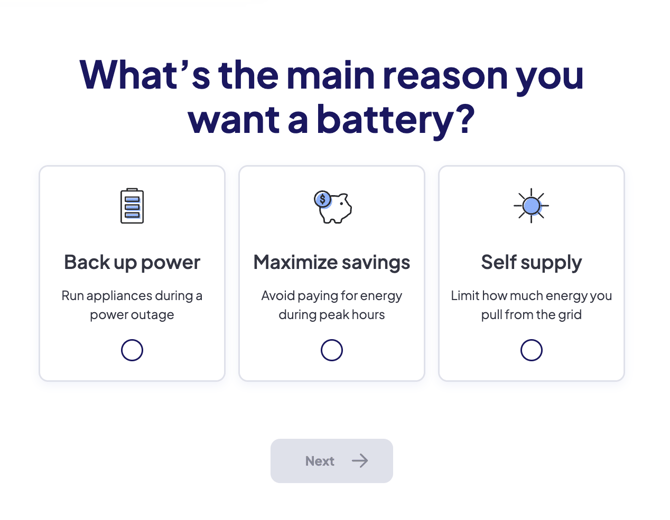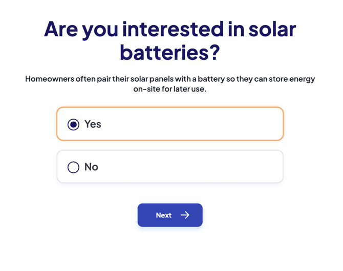 During your quote setup, you’ll be able to indicate that you’re interested in adding energy storage to your solar installation.